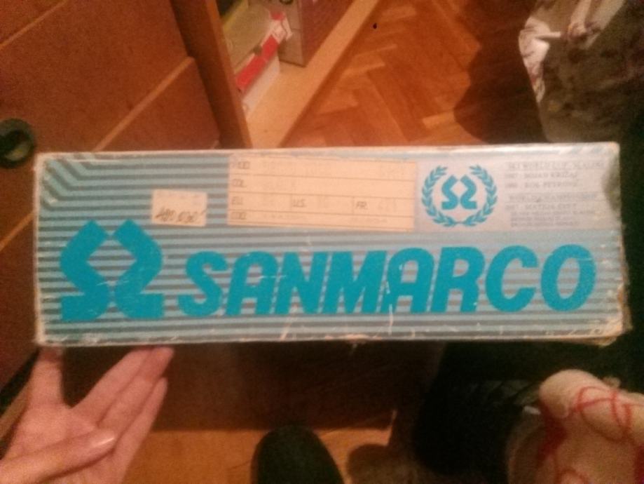 San Marco pancerice, 40 broj. Crne sa rozo narančastim kričavim kopčama. Dobre. Made in Italy