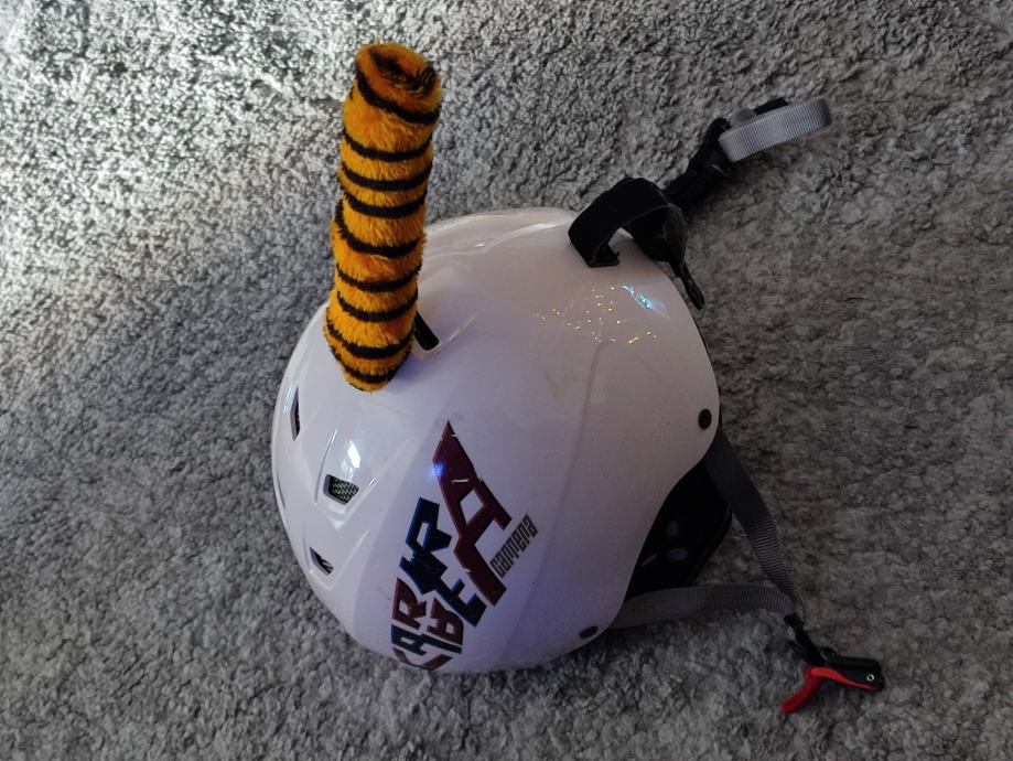 Prodajem rabljenu dječju kacigu veličine 53cm za dijete između 6-10 godina. Ništa joj ne fali (dijete ju je preraslo). Uz kacigu ide i rep tigra.
