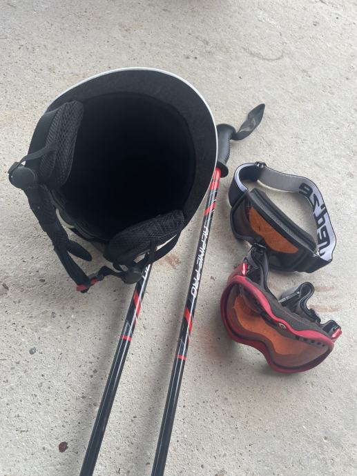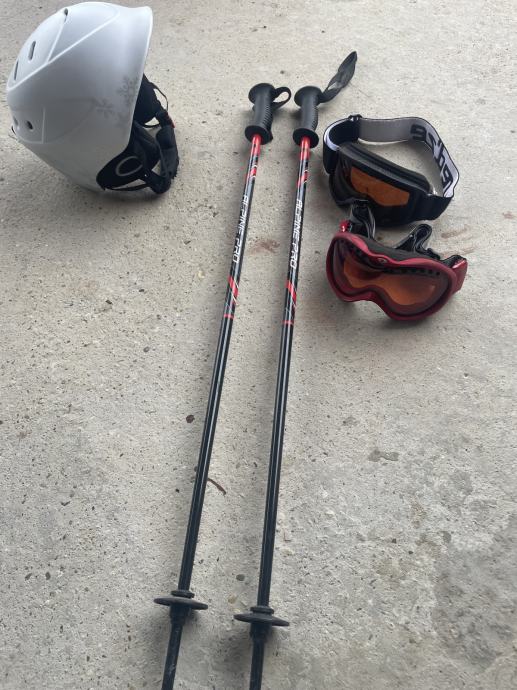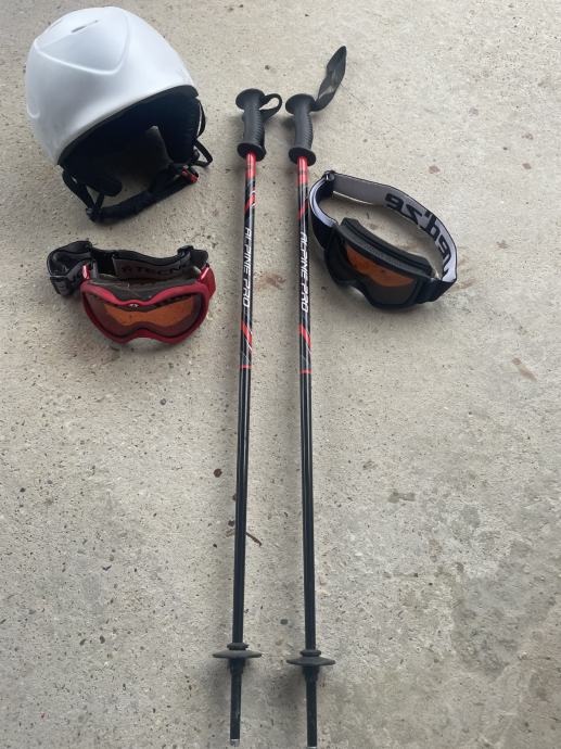 Dječje skijaške naočale kaciga i štapovi jedanput korišteno - 70 eur-a
