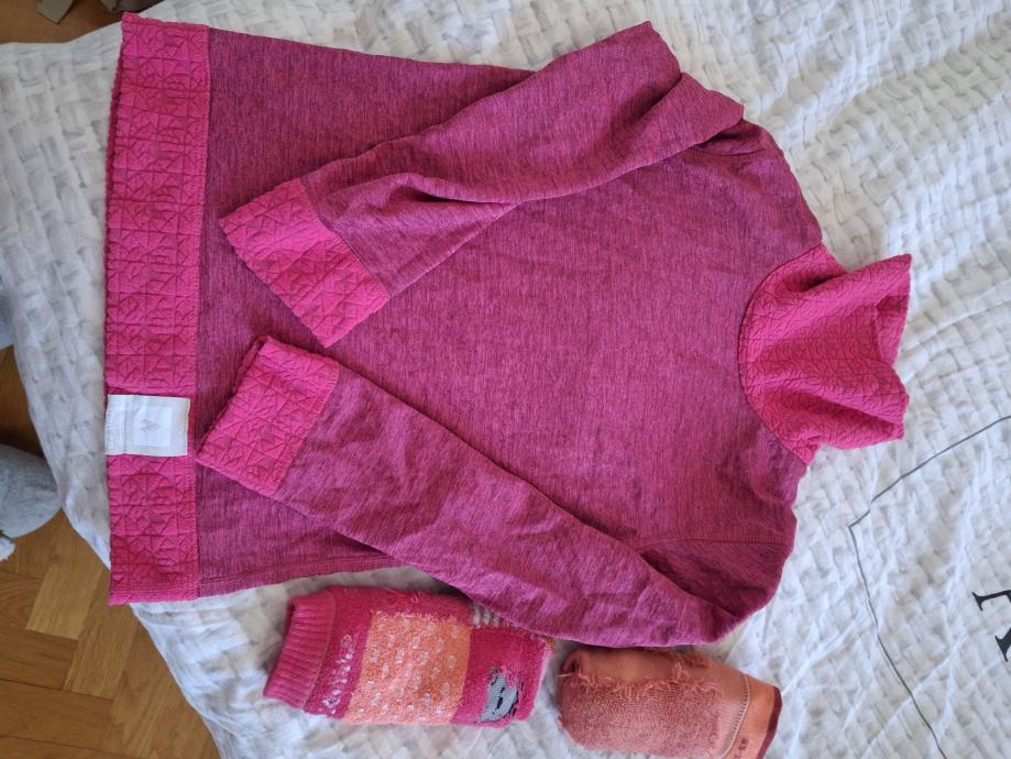 Kaciga je u odlicnom stanju!Uz nju poklanjam rozu majicu za skijanje i carape termo 2 para za uzrast 10 godina