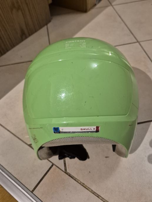 Skijaška kaciga u jako dobrom stanju, homologirana za natjecanja. Imali smo i štitnik za bradu, ali nažalost je negdje zagubljen u kući ili garaži.