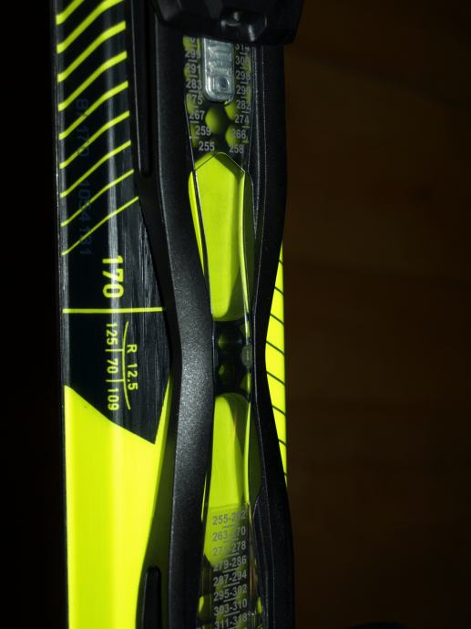 Kratki radijus od 12,5 omogućava vođenje skijaša izravno u zavoj. Ravan donji dio za izravno i precizno skijanje. Dio ispod stopala pridonosi brzom prelasku od ruba do ruba. SHELL FIBER TEC konstrukcija: složena jezgra, omotać od fiberglasa od ruba do ruba za bolji prijenos potpore.