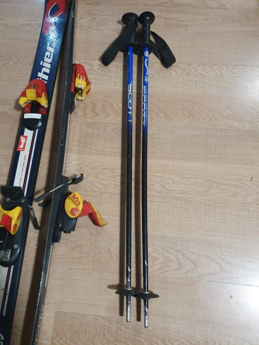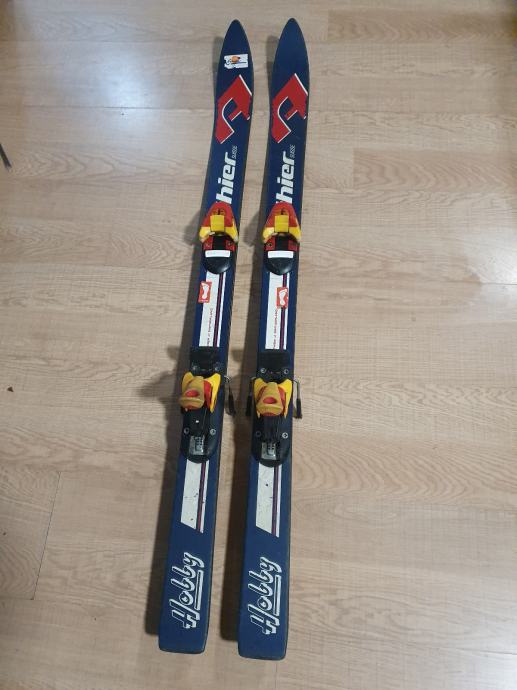 Dječje skije Hobby dugačke 120cm s ispravnim vezovima. Štapove 80cm poklanjamo.