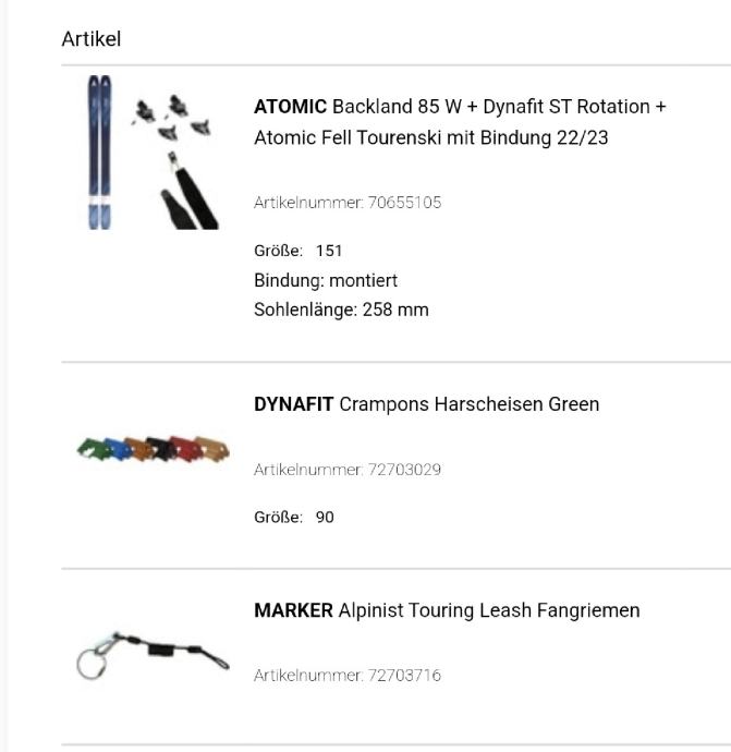komplet za turno skijanje : skije, vezovi, kože, srenaći, vezice