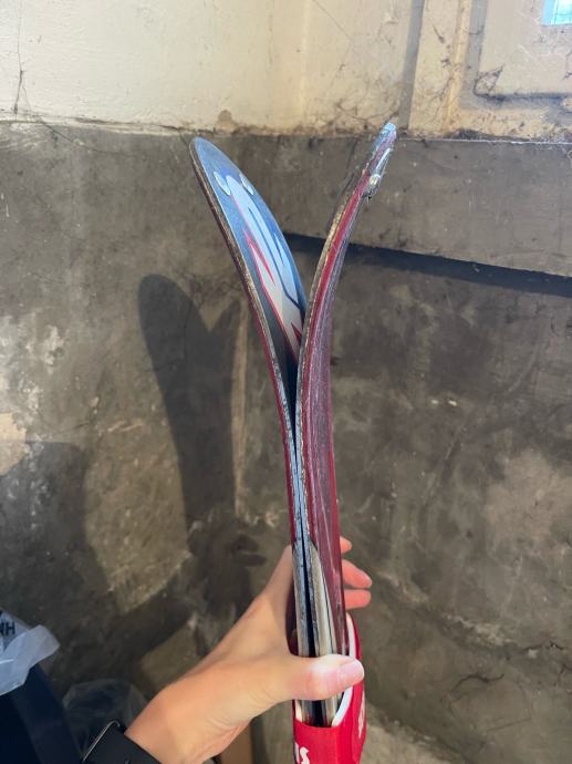 Vidljivi su tragovi korištenja na rubovima i površini, što je uobičajeno za rabljenu opremu, ali bez većih oštećenja. Pogodne za rekreativno skijanje. Duljina skija odgovara osobama visine otprilike 165 do 175 cm.