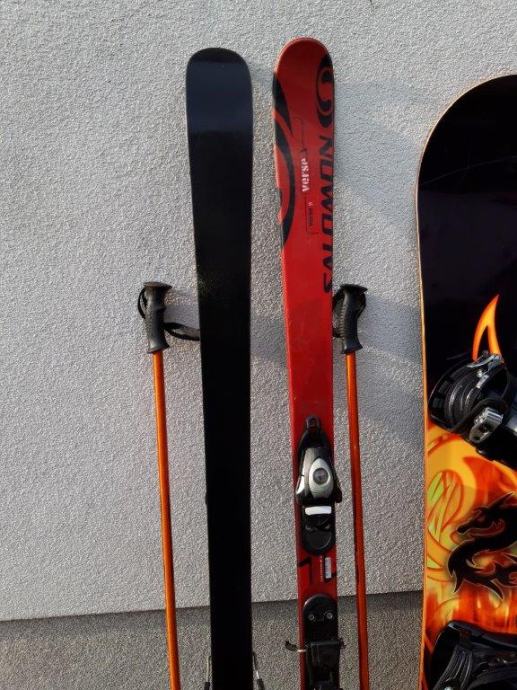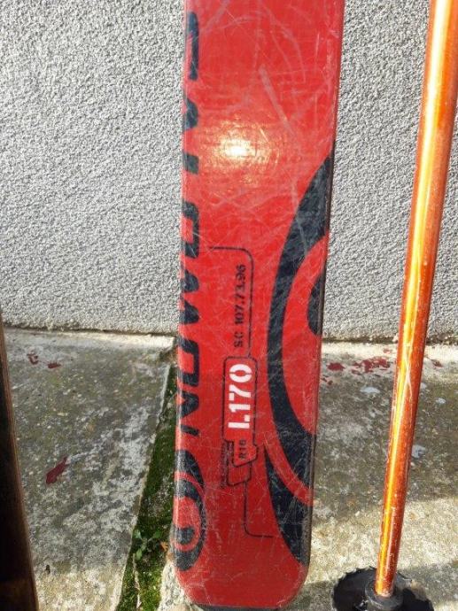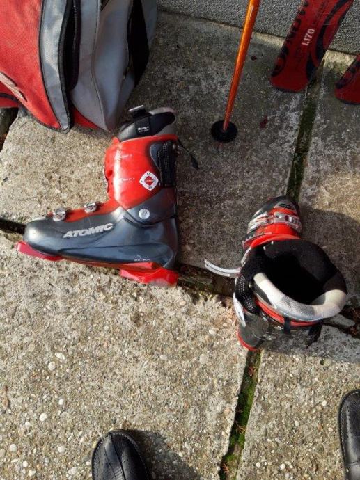 Kvalitetno očuvane skije s vezovima (SALAMON-verse 5/l.170) i štapovi (55E) sa pancericama ATOMIC RECCO 30.0(br.45) sa torbom-55E malo korišetno prodajem -110EURA