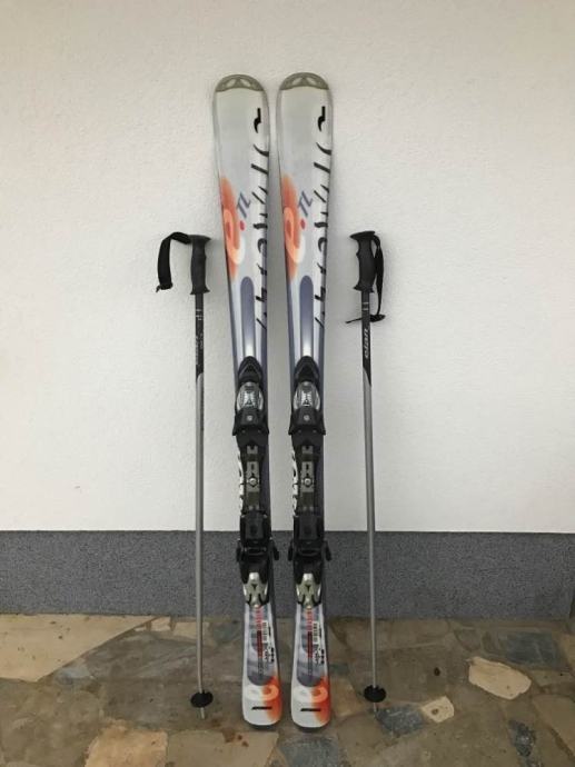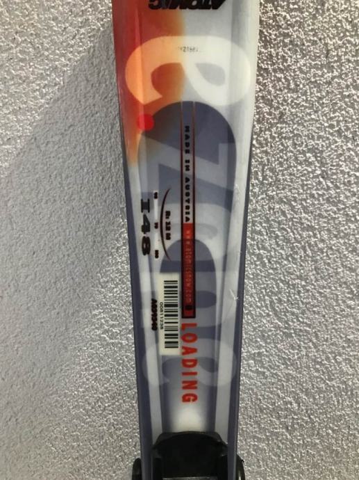 Skije Atomic 145 cm sa vezovima i štapovima.