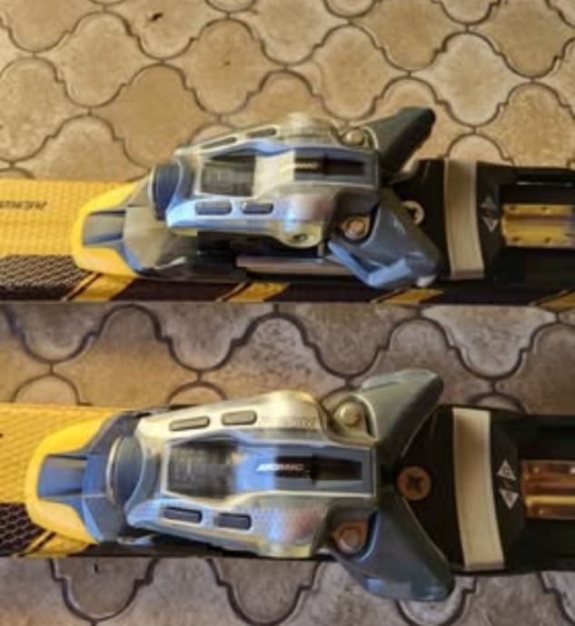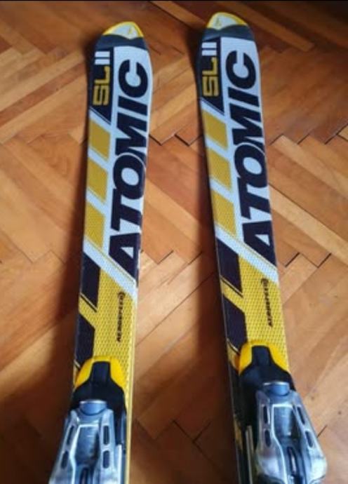 Skije Atomic SL 11M sa vezovima Neox 410, vrlo cvrste i teske skije za odlicne skijase.