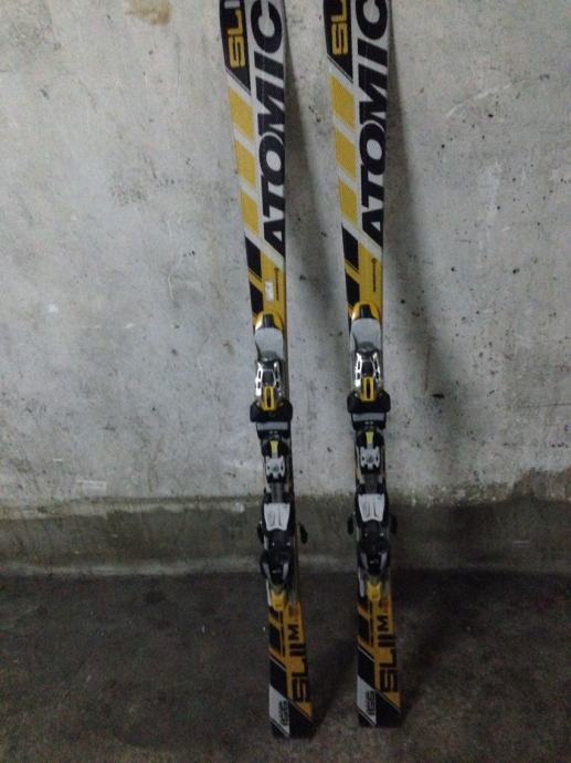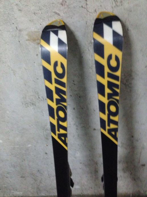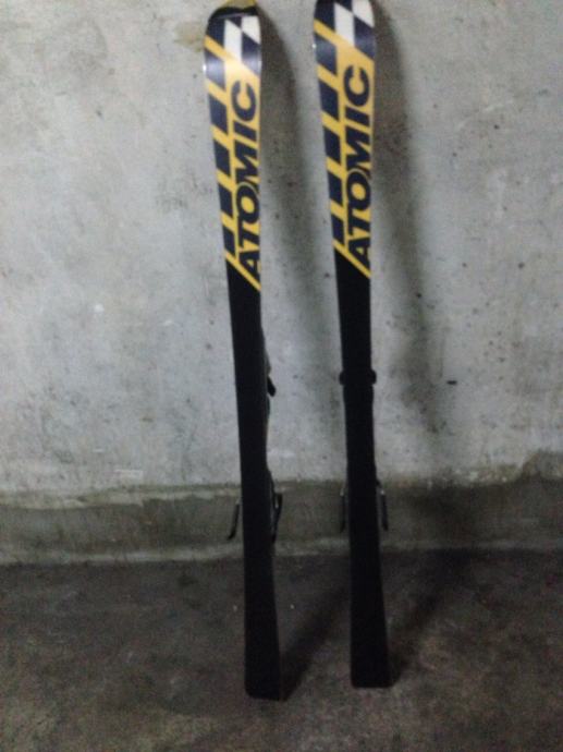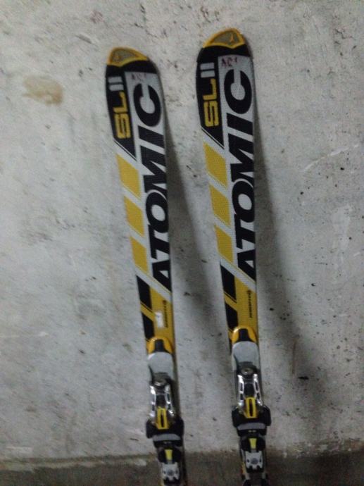 Skije atomic sa vezovima atomic, visine 155 (natjecateljske skije nove takve koštaju 500 eura) model SLII, vožene 4 sezone po tjedan dana, potreban veći servis! Samo atomic vezovi vrijede više od 500 kuna!