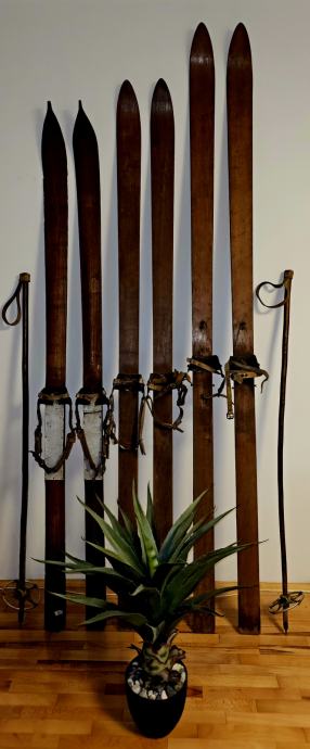 Prodajem skije drvene 3 para u odlicnom stanju samo u kompletu.Cuvane kao uspomene od familijarnog naslijedja.Stare preko 100 godina pogodne za planinske HOTELE skijalista kao MUZEJE kolekcionare i sakupljace starih rijetkih antikviteta.Ovakve skije se nemogu kupiti i nabaviti jer su u perfektom stanju sto dokazuju slike i stanje autenticno.JEDINSTVENA PRILIKA DA SE KUPE UNIKATNE STVARI ISTORIJE POCETKA OVOG SPORTA