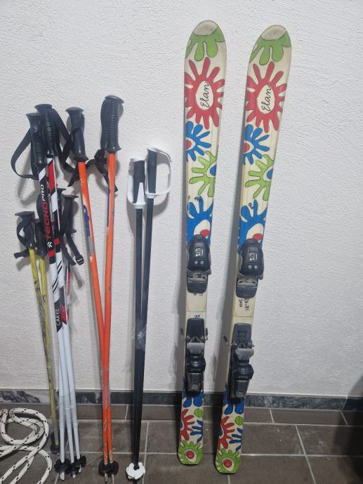 Prodajem skije Elan duljine 140cm s vezovima i odgovarajucim 1 parom štapova. Skije imaju vesel dizajn s šarenim motivima sunca i cvjetova. Vezovi su montirani i funkcionalni. Idealne za mlađu dob ili početnike.