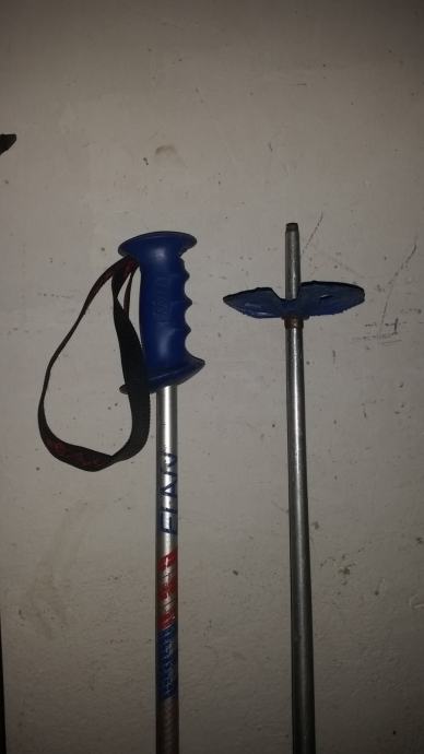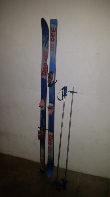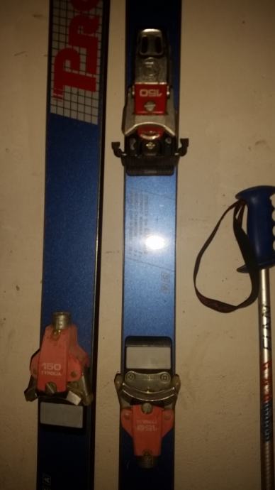Korištene skije ELAN 330, zajedno sa vezovima, stoperima i štapovima u kompletu.