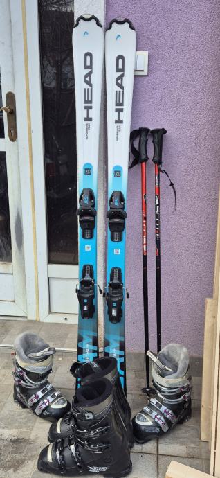 Skije kupljene prošle godine i skijano s njima 3 dana.Uz njih pancerice veličine 36.5 ili 39 te štapovi.Cijena kompleta 110 a samo skija 100 eura.