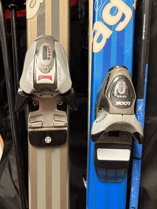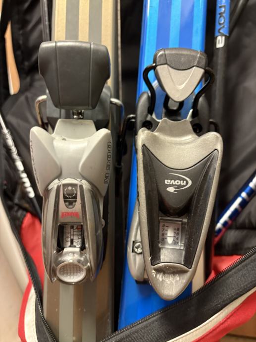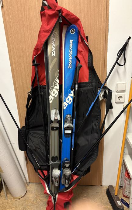 Dynastar Agyl 6, Made in France. Dva para malo korištenih skija s vezovima, štapovima i Atomic torbom. Duljina skija je 170 i 162cm.