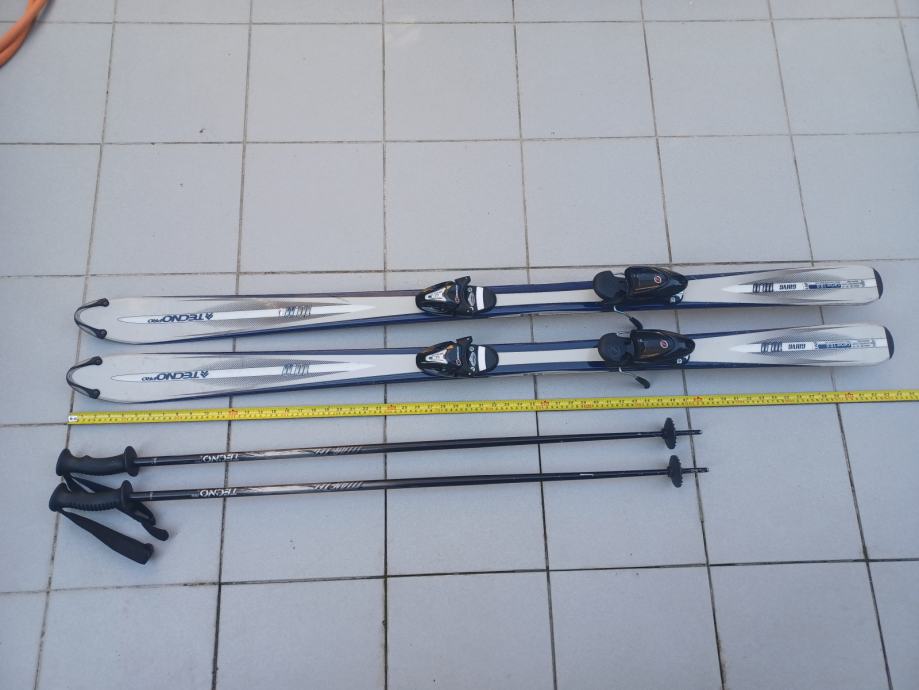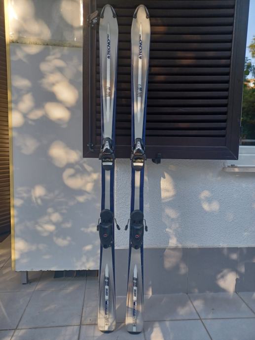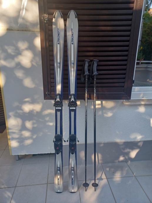 Prodajem skije Tecno pro carve duljine 158cm s vezovima i štapovima.