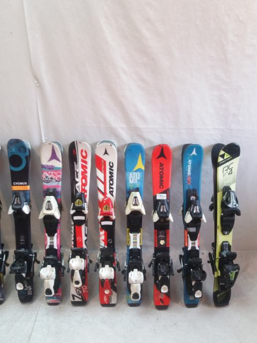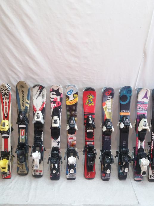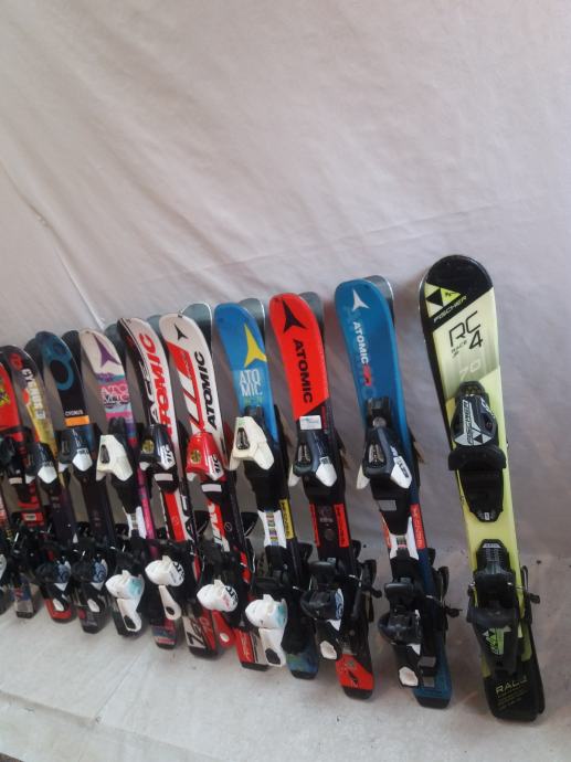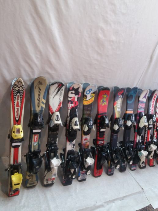 Skije s vezovima, u odličnom stanju, servisirane, navoskane. Cijene s lijeva na desno: 1. 20e, 2. 40e, 3. 60e, 4. 60e, 5. 60e, 6. 75e, 7. 75e, 8. 75e, 9. 75e, 10. 75e, 11. 75e, 12. 75e, 13. 75e, 14. 75e, 15. 75e. Moguć najam,Moguće u kompletu sa pancericama,kacigom i štapima moguća dostava poštom ili po dogovvoru. Pogledajte i druge naše oglase. Dogodine kada dijete preraste moguća zamjena za veće uz nadoplatu.