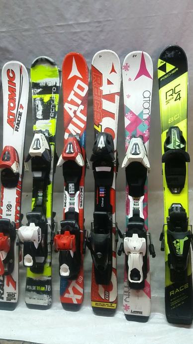 Skije 80cm sa vezovima u dobrom stanju servisirane i spremne za sezonu.Sa ljeva na desno:1.2.35e par.3.4.40e par.5.45e.6.7.60e.8.9.10.11.12.70e par.13.14.15.16.17.18.80e par.Kad djete preraste mjenjamo za vece uz nadoplatu.Moguce dostava postom ili po dogovoru.Pogledajte i druge moje oglase.