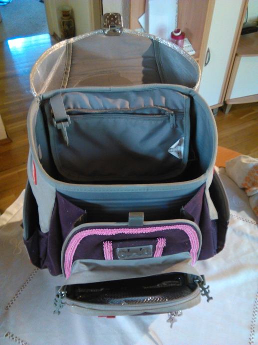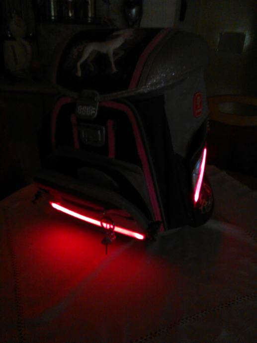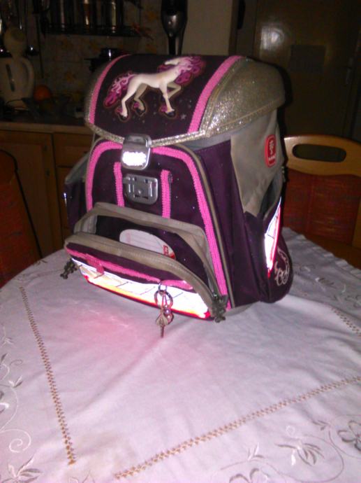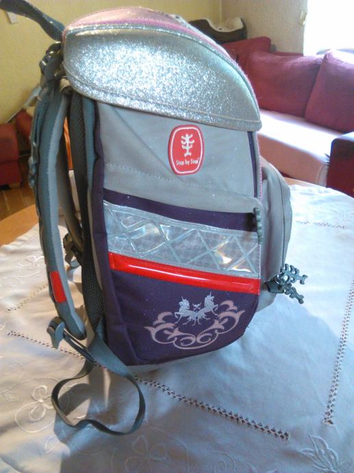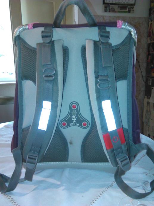 Torba hama step bay step ima ergonomski oblikovana leđa sa posebno oblikovanim utorima za poboljšanu ventilaciju, poseban mrežasti materijal za optimalnu cirkulaciju zraka, podesive naramenice, čvrsta metalna kopča na glavnom pretincu, izolirani (termo) prednji džep za čuvanje hrane i pića, dva bočna džepa i reflektirajući elementi za sigurnost u prometu +led svijetla sa svih strana torbe koja se pale na naramenicama tako da će vaše dijete biti maximalno sigurno na putu u školu i povratku iz nje.Torba je korištena mjesec dana tako da još miriše na novo.Plaćena je 1.200 Kn.