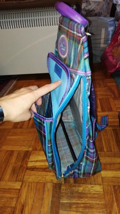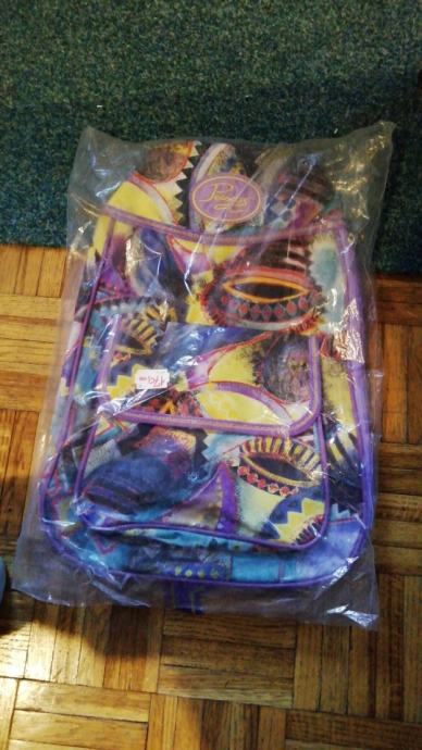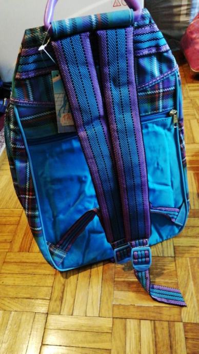 Nova, ima etiketu. Od stajanja je malo zmazana i zato je cjena takva. Ovaj u foliji je 50kn. Leda su anatomska, vidi se na slici. mekano ali deblje popunjena, rucke nesto tanje. Ima veliki pretinac koji se otvara bocno i jedan manji prednji i srednji straznji dep.. moze se vidjet uzivo..