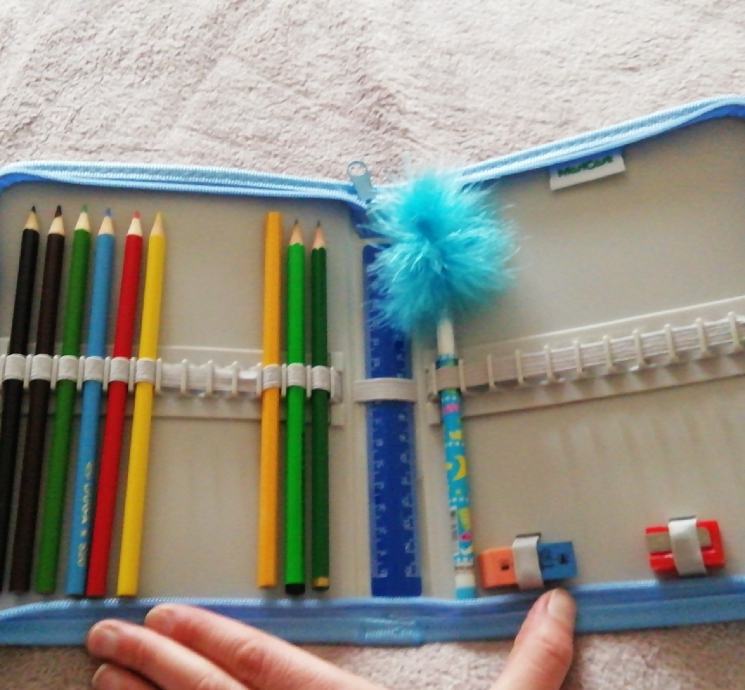 Nekoristena. Fale flomici i kemijska jer vise ne ostavljaju trag kako bi trebali. Moze se dodati jos po zelji sto se zeli. Bojice se mogu staviti i druge pa da ima vise nijansi. S prednje strane je depic na cicak. Tu se moze staviti jos flomastera ili po zelji