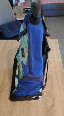 Prodajem rabljenu, korištenu školsku torbu s kotačićima kupljenu u narodnim novinama. Dimenzije 44x31x17cm; teleskopska ručka.