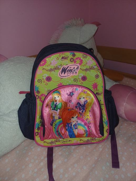 Prodajem korišteni Winx ruksak u dobrom stanju, idealan za male obožavateljice ovih popularnih vila. Ruksak ima šareni dizajn s likovima iz crtića Winx Club na prednjem džepu i glavni dio u žuto-zelenom tonu s cvjetnim detaljima.
