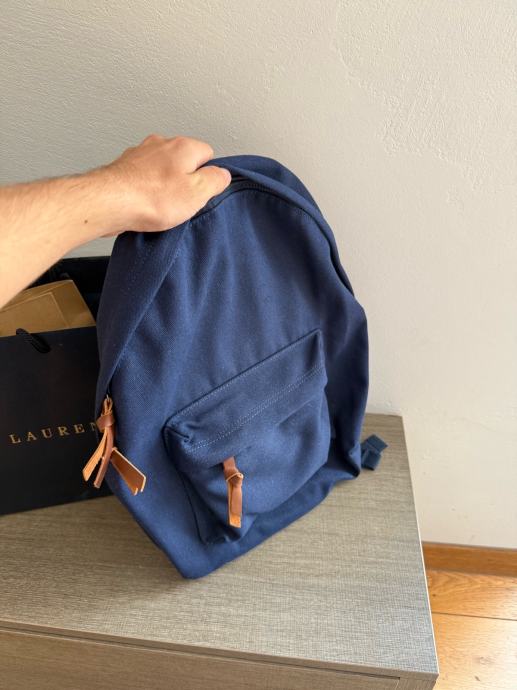 Prodajem elegantan Ralph Lauren ruksak tamnoplave boje, novo stanje bez etikete. Ruksak ima praktičan prednji džep s kožnim detaljima i prepoznatljivim logom brenda. Idealan je za školu ili svakodnevnu upotrebu zbog svoje kvalitetne izrade i bezvremenskog dizajna.
