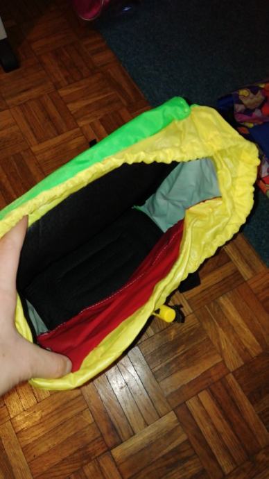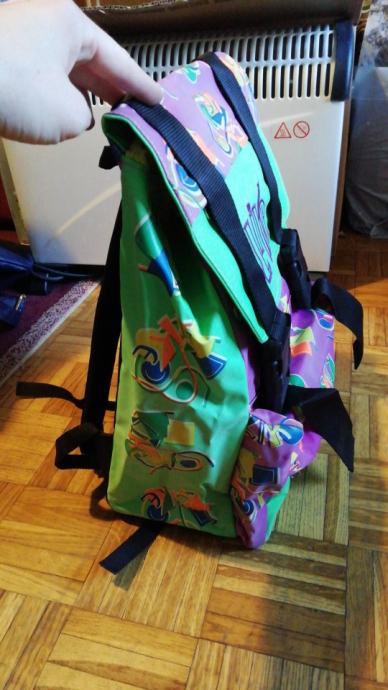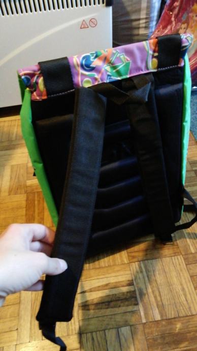 Nova, ali nema etiketu. Od stajanja je malo zmazana i boje su malo izbljedile zto je cjena takva. Leda su anatomska, mekano ali deblje popunjena kao i rucke. Ima veliki pretinac koji se dodatno osigurava spagicom i jedan manji i veci dep.. moze se vidjet uzivo..