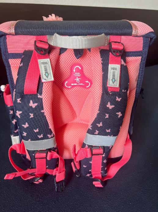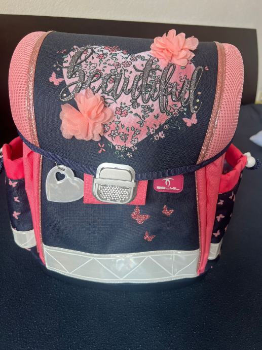 Potpuno nova, nikad koristena školska torba. Dimenzije torbe su 36 x 32 x 19 cm, a kapacitet je 19 litara, što je dovoljno prostora za sve školske potrepštine. Iako lagana, ova torba je izrađena od visokokvalitetnih, čvrstih i vodootpornih materijala, osiguravajući trajnost i otpornost na sve vremenske uvjete.