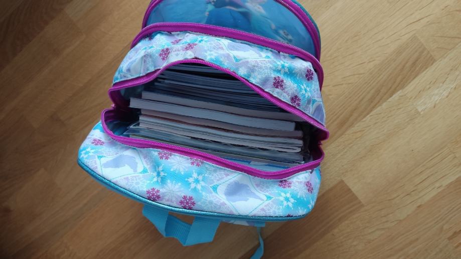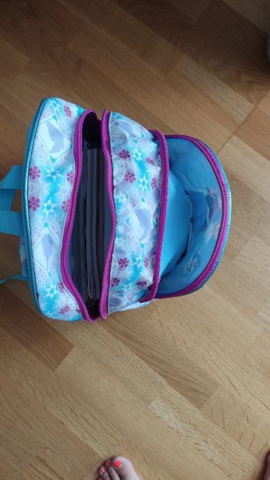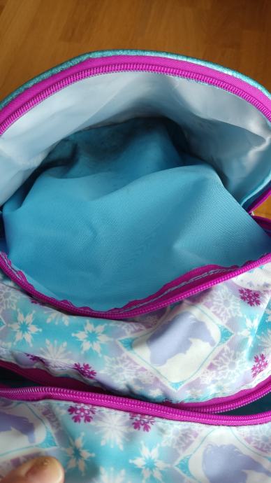 Torba je nošena jednu školsku godinu i očišćena.Na samom dnu torbe (unutarnji dio) vide se tragovi olovki.
