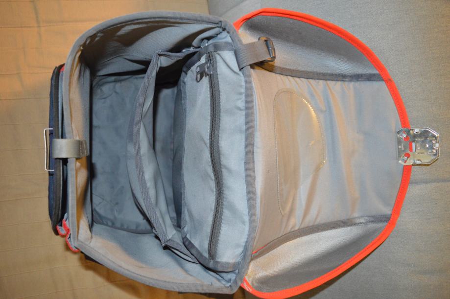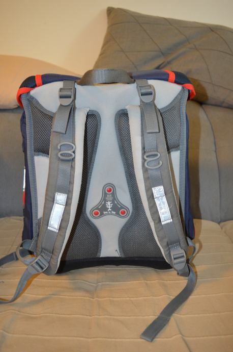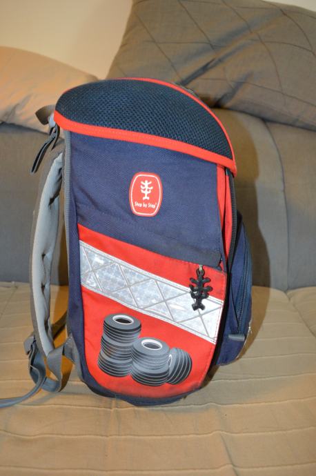 Vrlo kratko korištena s minimalnim tragovima. Dimenzije: 33 x 36,5 x 23,5 cm, Volumen: 16 L, Težina: 1.16 kg, Materijal: POLYESTER. Ručkica za lakše nošenje/vješanje, magnetni zatvarač jednostavan za rukovanje, dva bočna pretinca koja se šire prema van kako ne bi zauzimala unutarnji prostor. Podjednako popunjeni bočni pretnici osiguravaju stabilnost ruksaka, prednji pretinac s patentnim zatvaračem. Reflektirajući elementi na prednjim i bočnim površinama, kao i na naramenicama. Stabilno, nepropusno dno za zaštitu od vode i blata. Glavni pretinac za knjige nudi dovoljno prostora za: pernicu, knjige, bocu za vodu, kutiju za kruh i mali kišobran, leđna pojačanja itd.