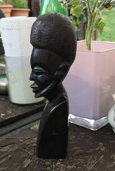 PREKRASAN AFRICKI UMJETNICKI IZRAZAJ U DRVETU - EBANOVINA..RUČNA REZBARIJA U JEDNOM KOMADU..IZ CCA 1950.g.. SAMOSTOJECA SKULPTURA.. LIK MUSKARCA..... SKULPTURA JE NASLIJEDJENA KAO DIO UMJETNICKE KOLEKCIJE.. I SA SIGURNOSCU SE MOZE RECI DA SE UKLAPA U SVAKI INTERIJER BEZ OBZIRA NA STIL UREDJENJA .. Dimenzije su : 24 x 8 x 6 cm.. Tezina je : 650 g.. Nazvati : 099 557 00 00..hvala
