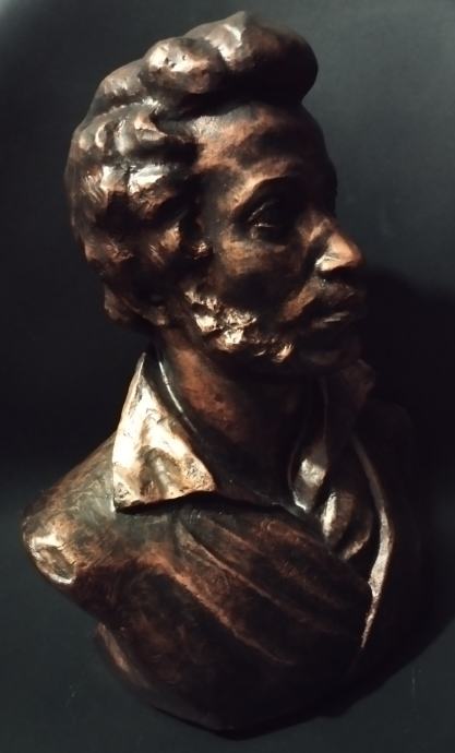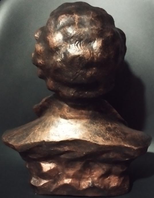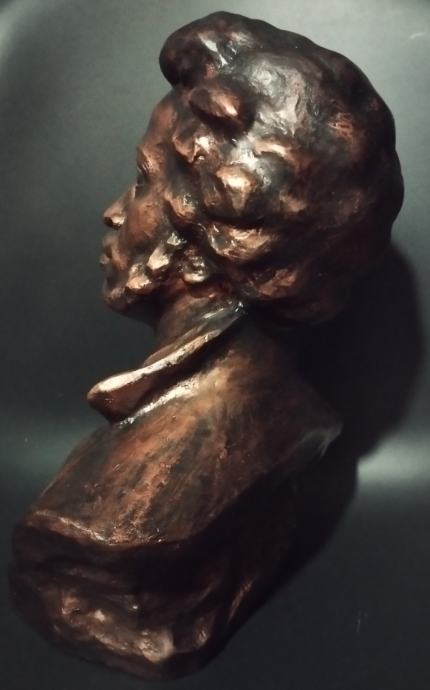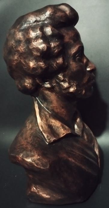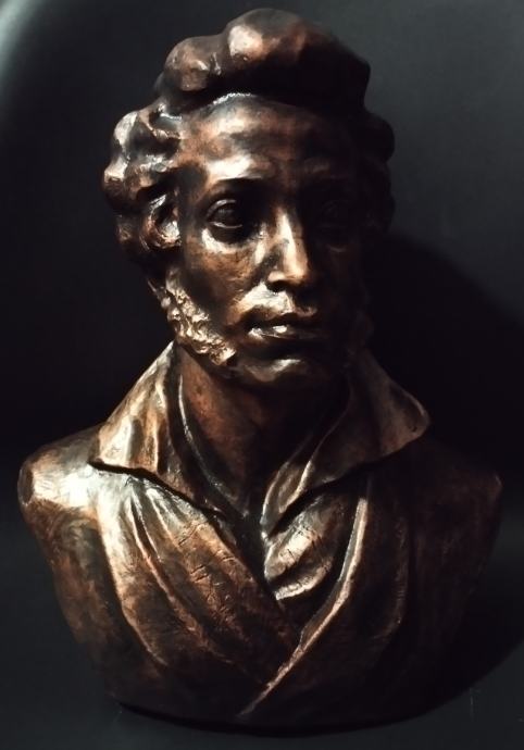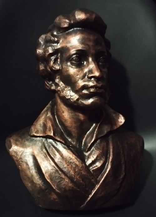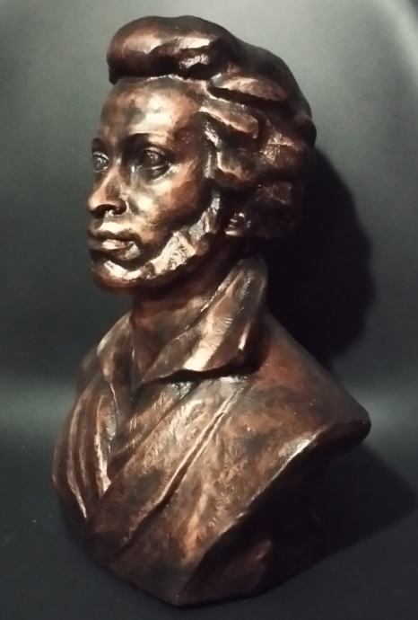 Stara skulptura Aleksandra Puškina, velikog ruskog pjesnika i utemeljitelja suvremenog književnog ruskog jezika. Obojano u broncu i patinirano. Materijal je neka vrsta tvrde plastike. Nepoznati autor.