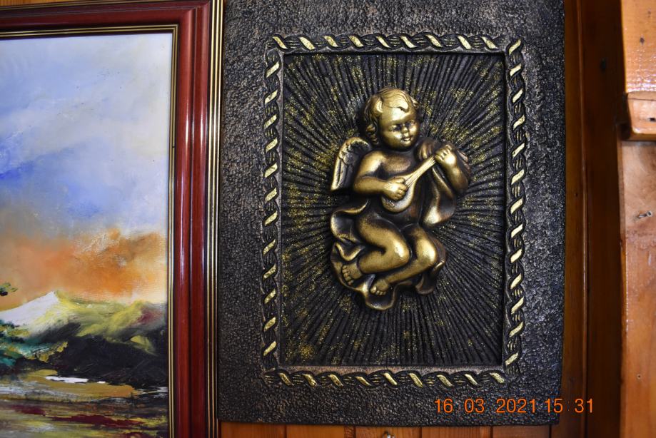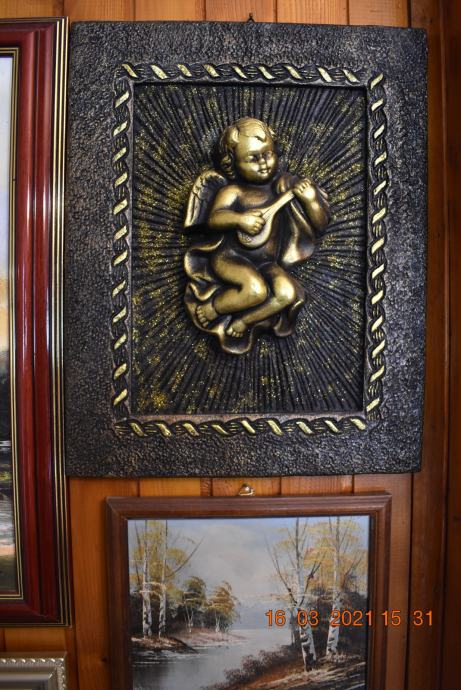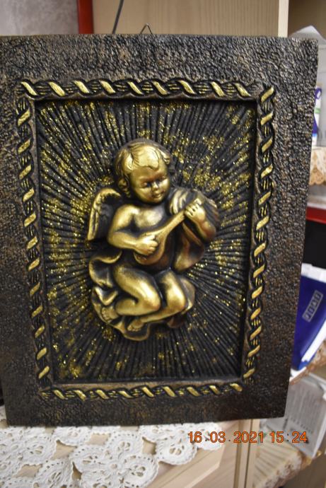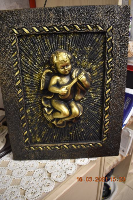 Anđeo--- motiv svira glazbeni instrument okvir je dimenzije 42x43 cm jako lijep porijeklo Nizozemska --unikat --pogledajte slike stanje kao na slikama pogledajte i druge moje oglase