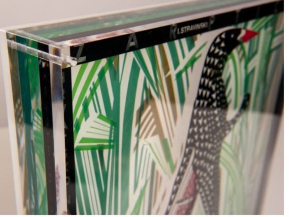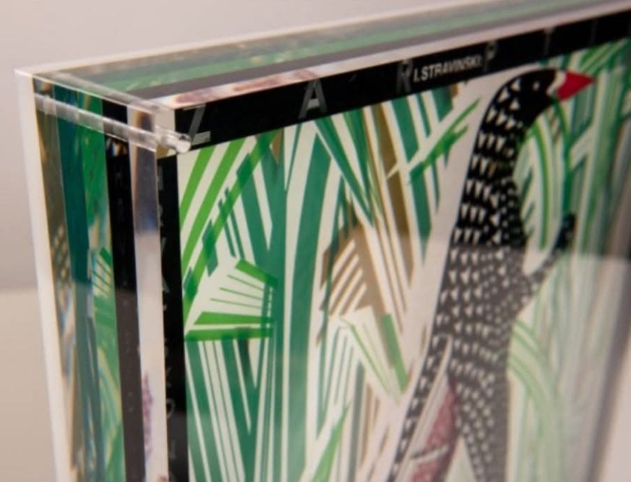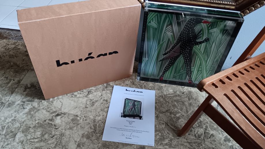 Multipla Žar ptica u dimenzijama 40x40cm sastavljenog od šest pojedinačnih planova od pleksiglasa. Svaki multipl je numeriran i potpisan na aluminijskoj pločici od samog Bućana.