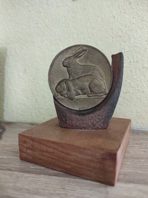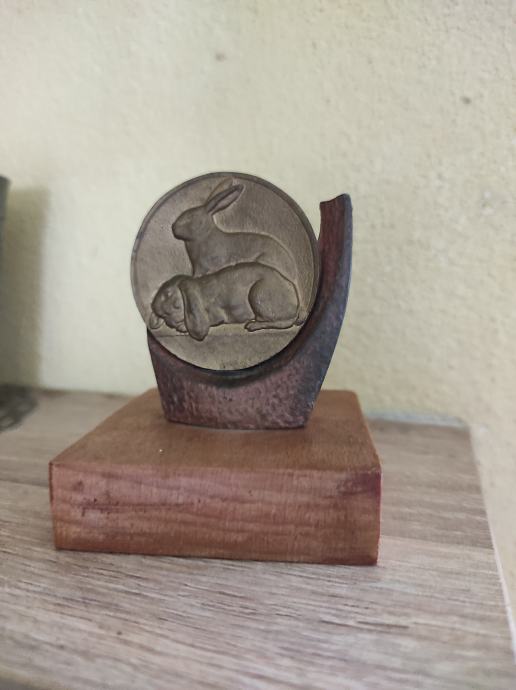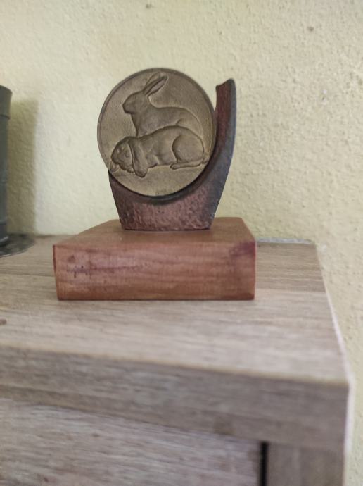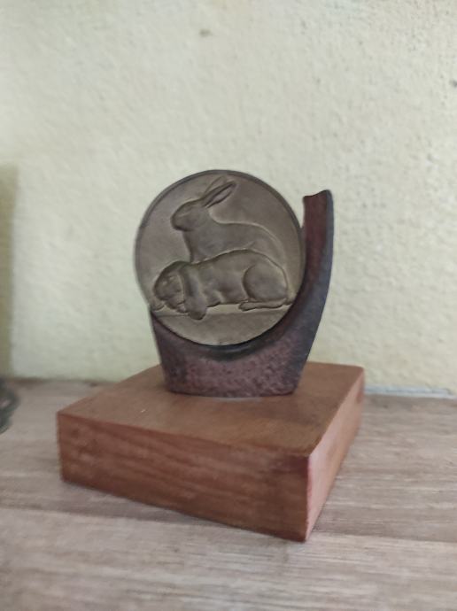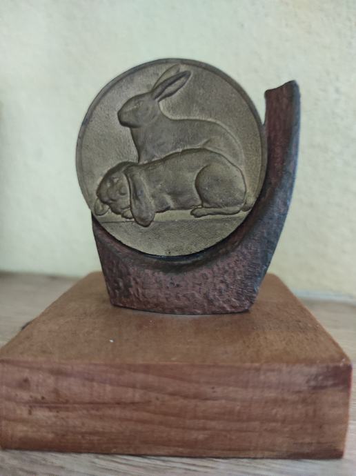 Jako stara statua ili medalja uokvirena,dva ZECA na postolju od drveta.Slicne statue se prodaju na e bayu i drugim internet stranicama za velike iznose ( pogledajte sami koliko) Ovo bilo od moga djeda koji je bio lovac pa pretpostavljam da je vezano za lov,ali nisam siguran.Za sve informacije nazovite ili pošaljite upit na Viber.Saljem Postom ili Tiskom ili u dogovoru sa kupcem.Pogledaj slike!!