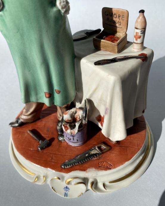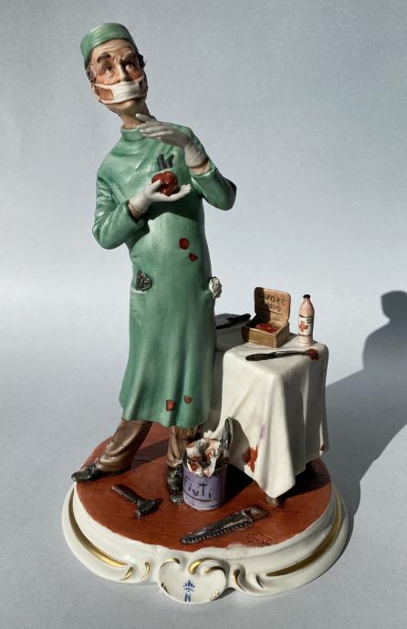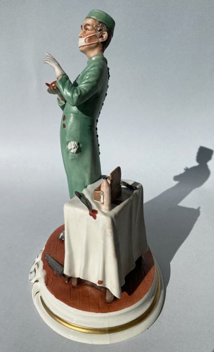 Capodimonte "Kirurg" figurica izrađena je do najsitnijeg detalja i prikazuje doktora, kirurga u njegovom radnom okruženju na malo satiričan način.