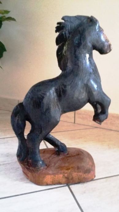 Drvena skulptura propetog crnog pastuha izrađena od hrasta.