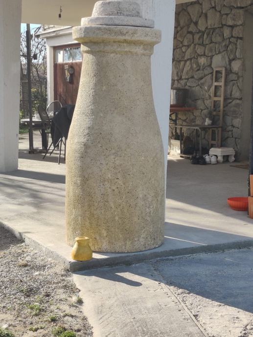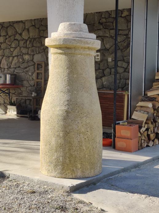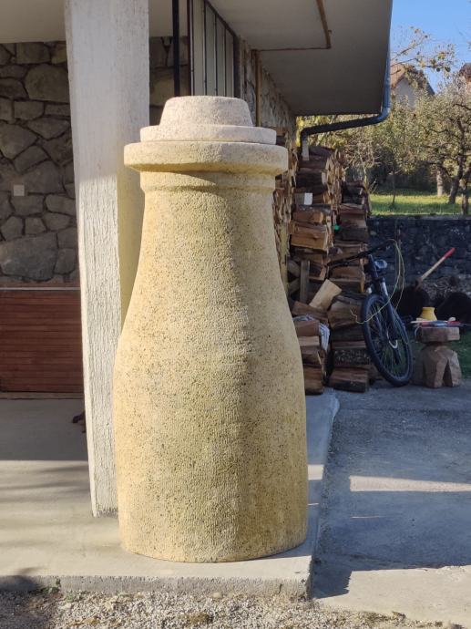 Prodaje se ogromni ćup, rađen prema pravilima struke ( armirani beton presvučen kamenom žbukom = imitacija kamena!), obojen bojom za kamen te impregriran. Ćup je visok 152 cm , širok od 60 - 70 cm, s kapom koja ima dva lica visok je 170 cm. Stijenka je debela oko 4 cm tako da sam ćup s kapom teži oko 350 kg. Ćup je ručni rad restauratora, jedinstven i neponovljiv, umjetničko djelo! Oluja ga ne može srušiti, niti mu kiša i snijeg mogu nauditi. Na tržištu nema slično djelo.Nazvati na broj: 098 755 311