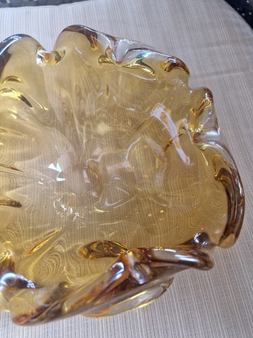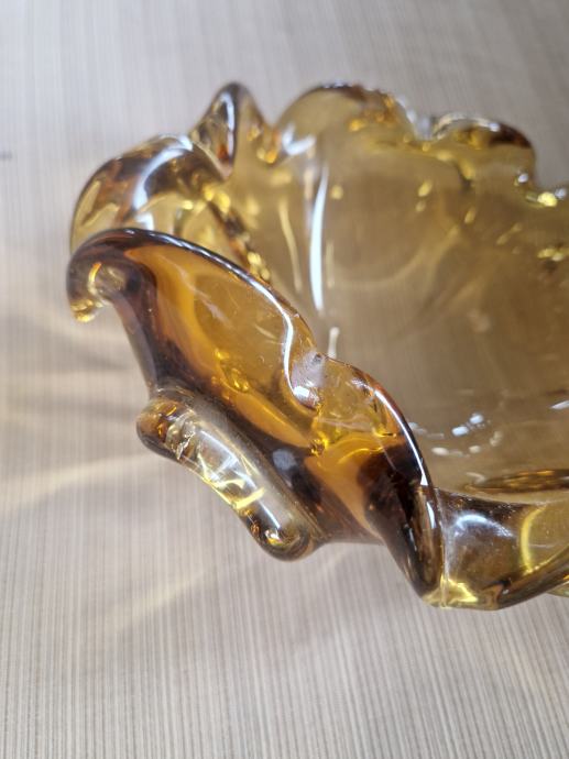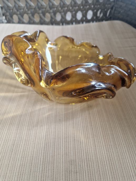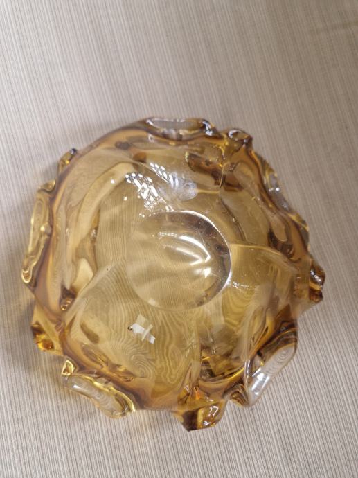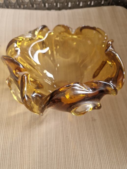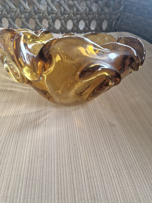 Širina 19 cm a visina 10 cm, neokrhnuta. Boja jantara.