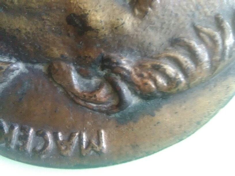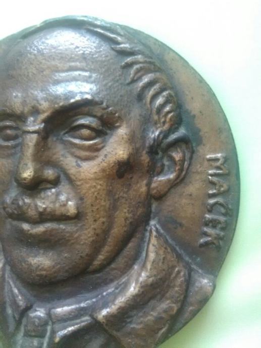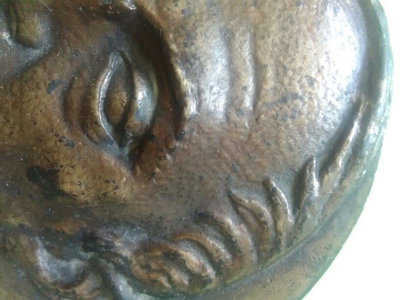 Odljev u bronci fi 18cm,vrlo kvalitetno napravljen poćetkom 40tih godina prošlog stoljeća.