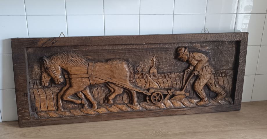 Prodajem odlično izrađen reljef orača s konjima bez oštećenja.