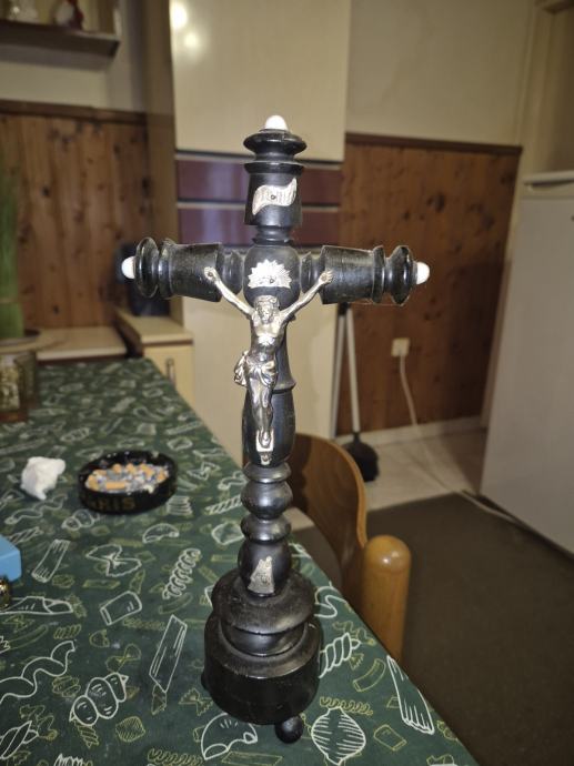 Secesija,ovo drveno raspelo u vrlo dobrom stanju,staro preko 100 godina,dali je Isus posrebren ili od srebra neznam sa sigurnošću,sa strana su porcelanski bijeli krajevi, dimenzije 33 x 15 ,ne propustite,pravi biser!Toplo preporučavam!