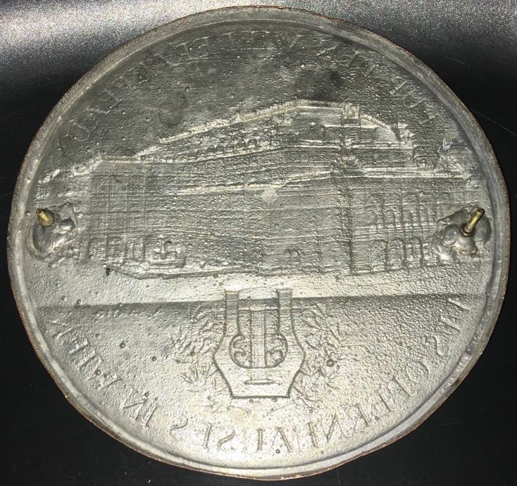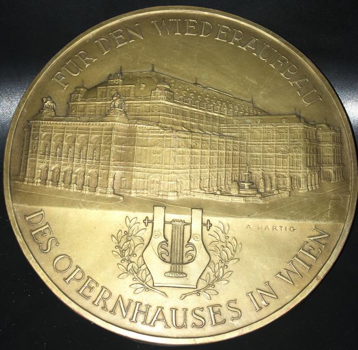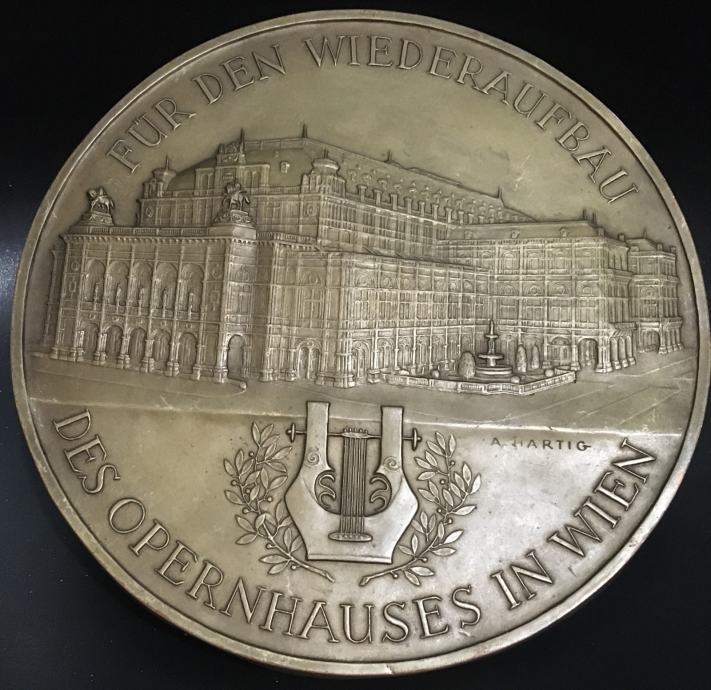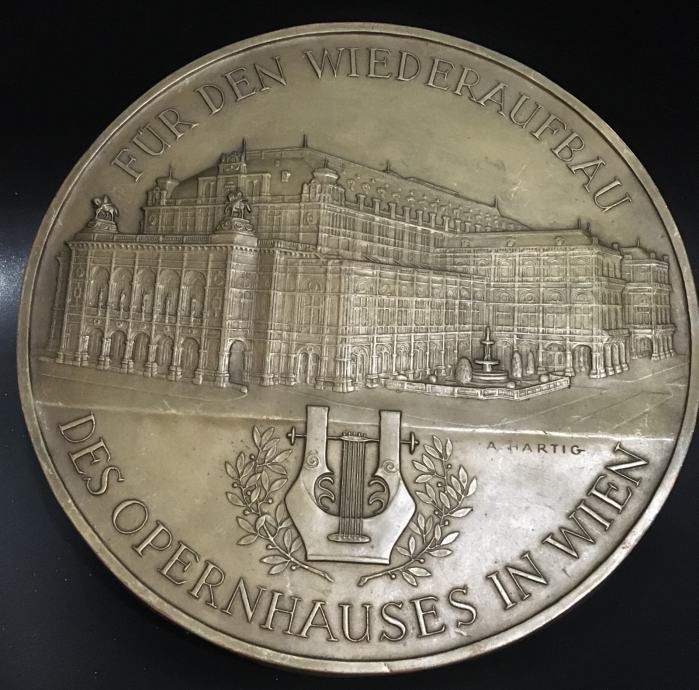 Metalna ploča (bakar ili mesing) s profilom zgrade Bečke državne opere. Promjer kruga je cca 22cm.