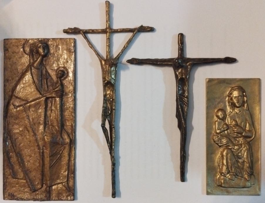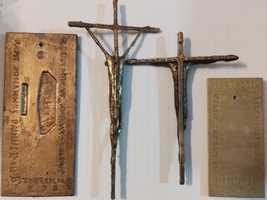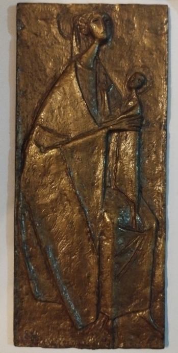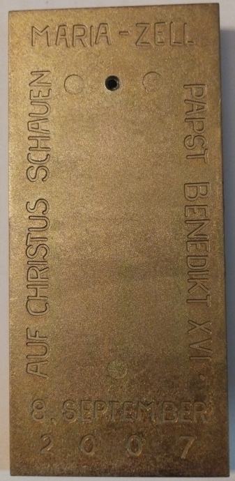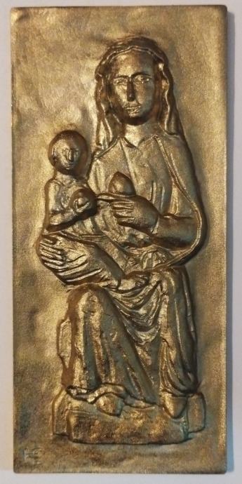 1. Madona s djetetom (manja), brončani reljef izrađen povodom posjeta Pape Benedikta Austriji, 8.9.2007.g. Dimenzije 11,8x5,5cm.