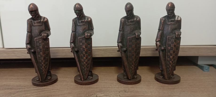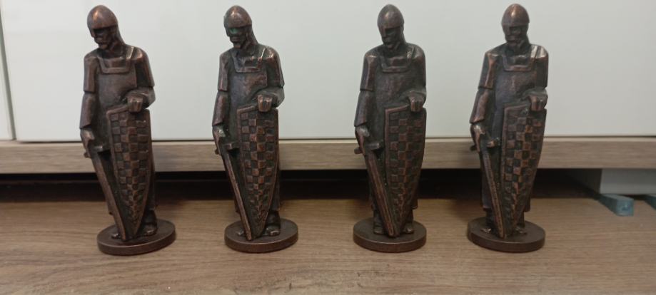 Figure ,4 komada,Hrvatski vojnik,visine 12 cm,rad akademskog kipara Hrvoja Urumovića,visine 12 cm,potpisana ..,materijal masivni cink sa završnom obradom od starog bakra,svih 4 za 100e.