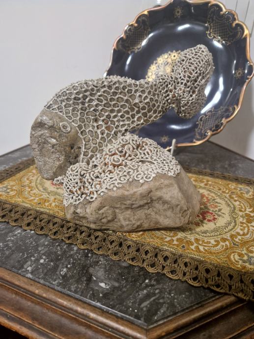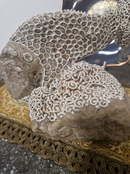 Dužina cca 25 cm a visina cca 20 cm. Top rad, izrazito teško zbog kamena.
