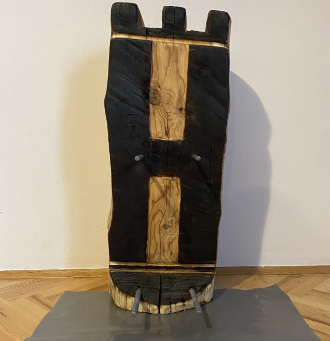 Ručni rad. Drvo cedar, nosači od čelika.