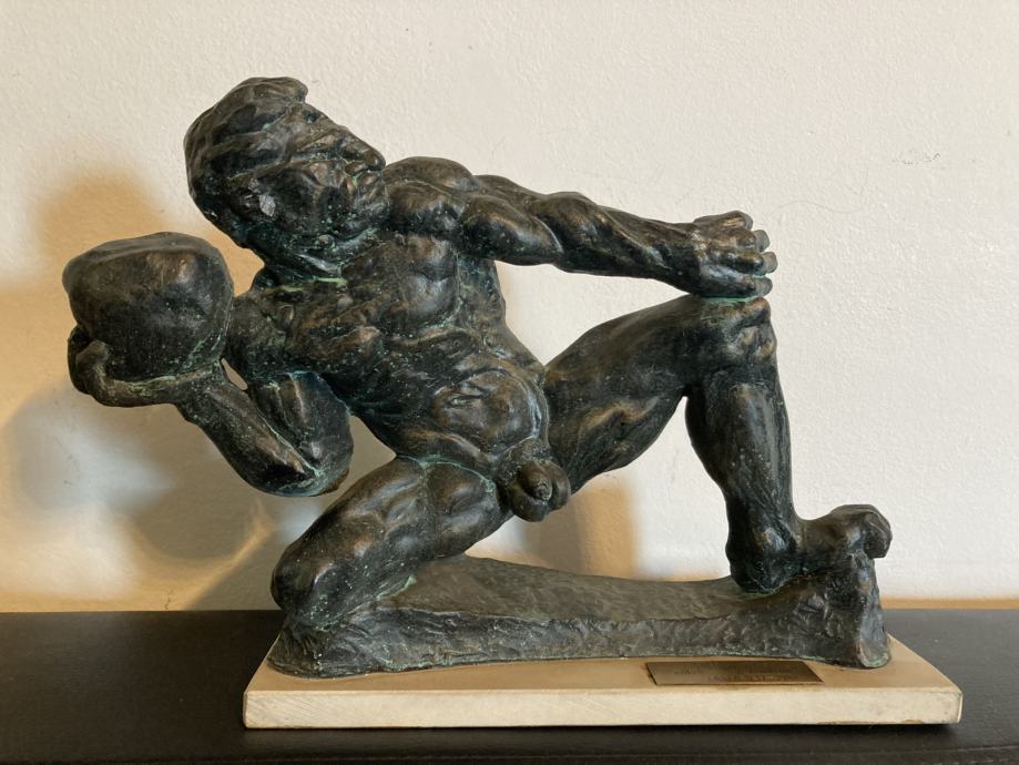 Skulptura Kiklop čuvenog hrvatskog kipara, Ivana Meštrovića. Originalna velika skulptura, iz 1933.g., se nalazi u parku ispred Galerije Meštrović u Splitu. Ova je gipsana replika napravljena početkom 80-tih godina, mramorno postolje.