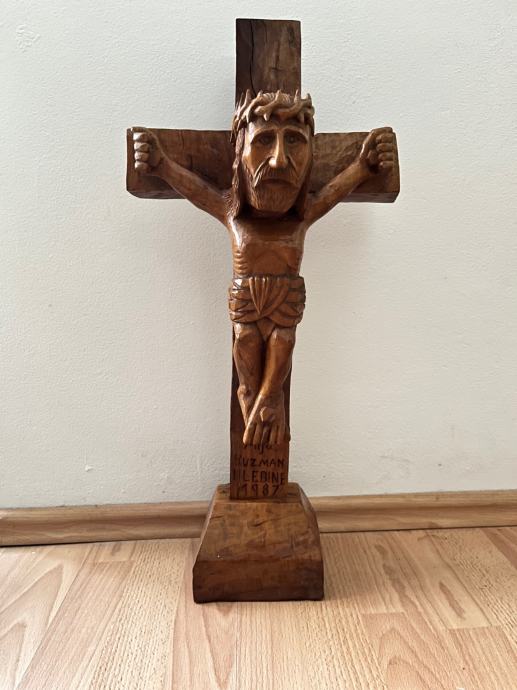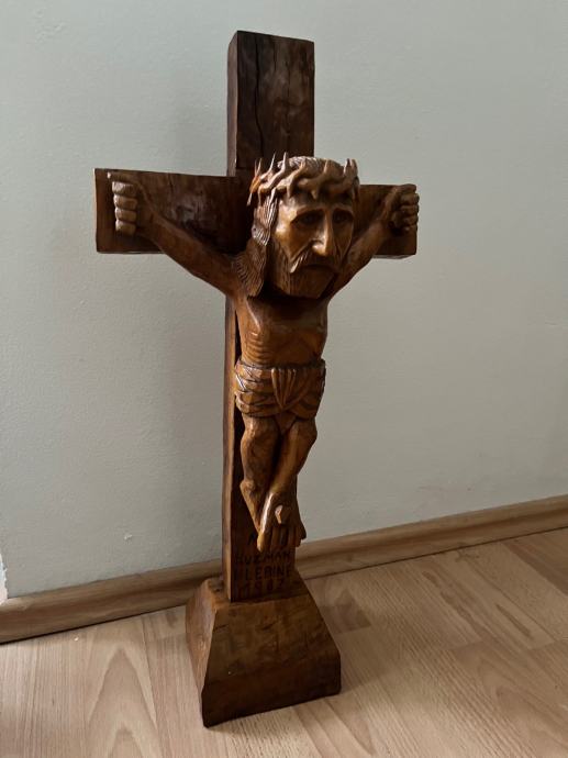Na prodaju je izuzetna i autentična drvena skulptura Isusa na križu, ručno izrađena od strane jednog od najistaknutijih predstavnika hrvatske naive – Mije Kuzmana. Ova skulptura, visoka 60 cm, izrađena je 1987. godine i nosi snažan pečat autorovog prepoznatljivog izričaja – jednostavnost forme, iskrena duhovnost i duboka simbolika.
